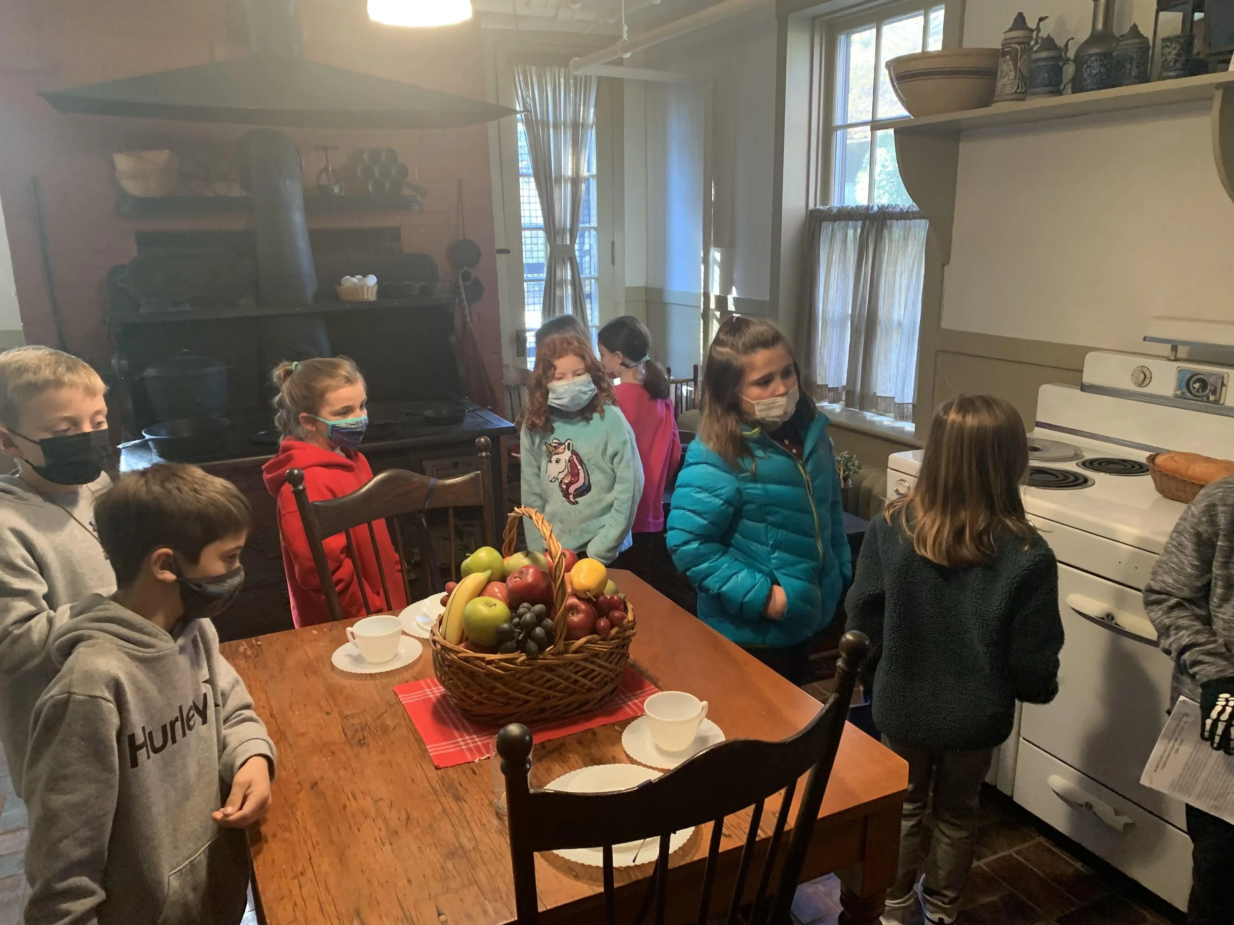 Today, ten second graders from Christopher Academy stopped by the Hill House Museum for a tour. As part of an assignment of a self-guided tour of Olde Towne, the Hill House was the main attraction. The students were introduced to a glimpse of Portsmouth’s history.